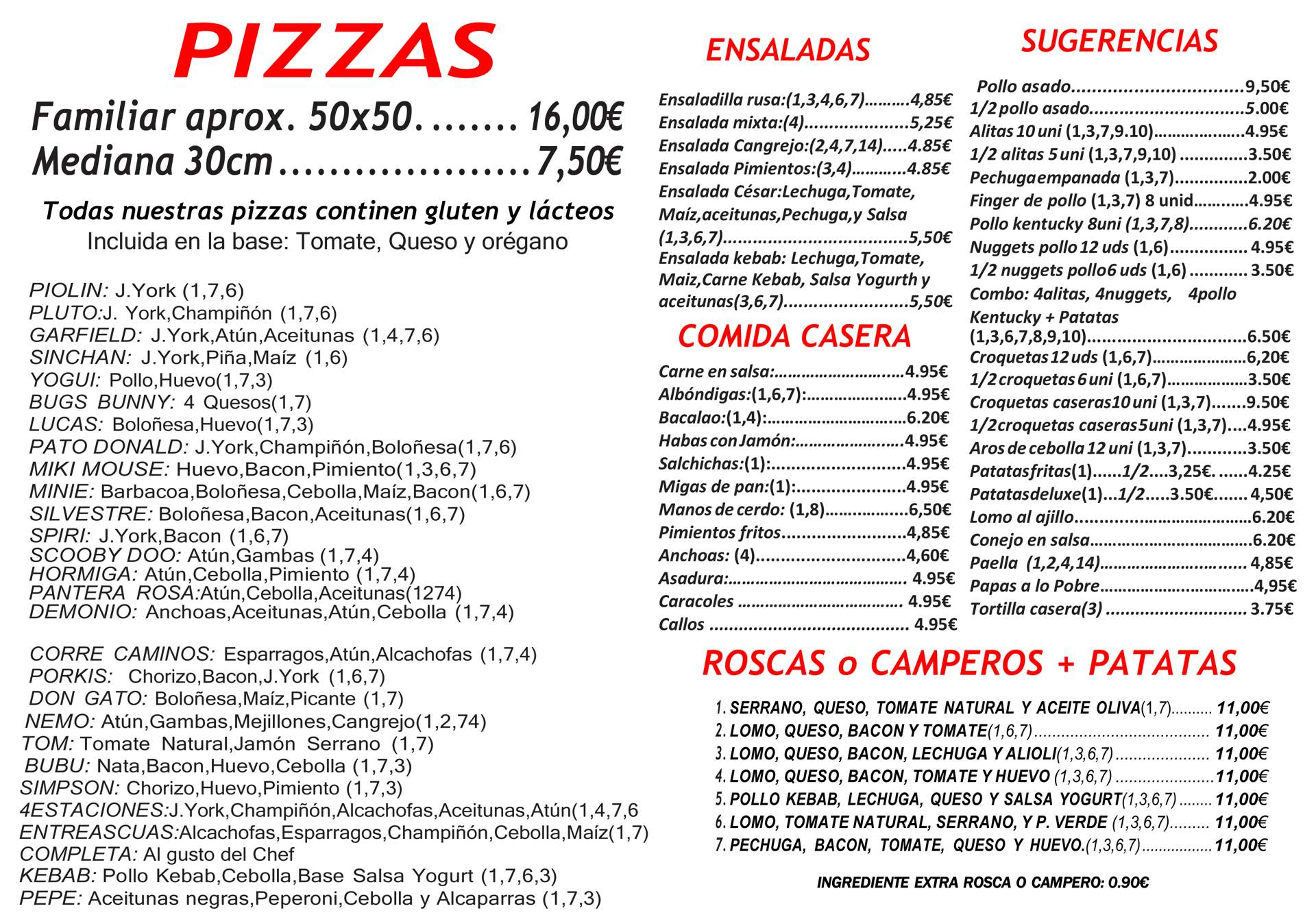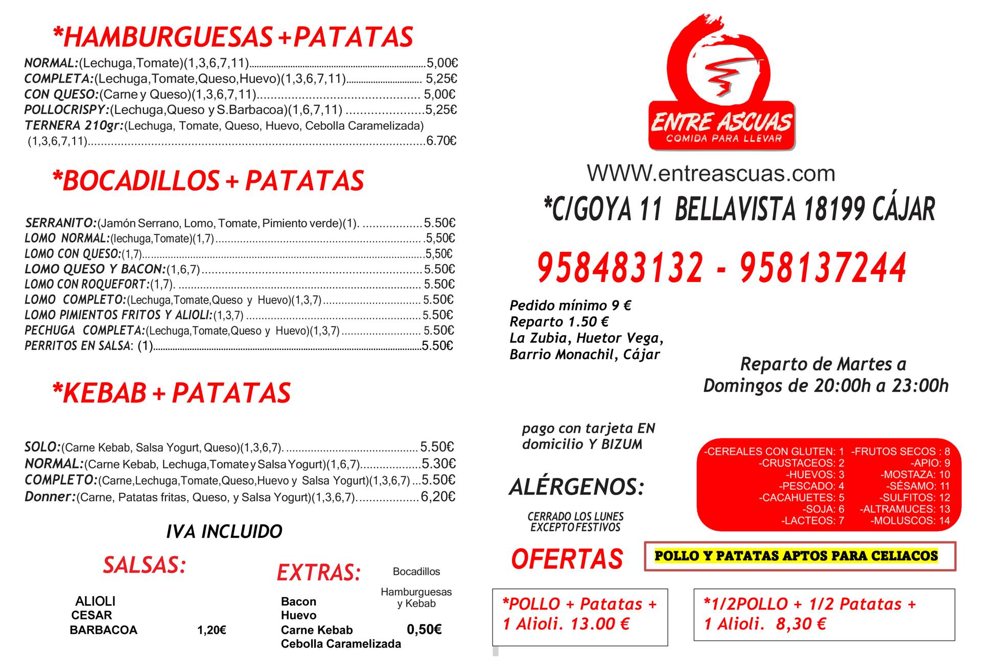 Cájar Calle Goya, 11 – Cájar. Tel: 958 48 31 32 – 958 13 72 44 Reparto a domicilio (pedido mínimo 9 €) Precio reparto 1,50 € De Martes a Domingos